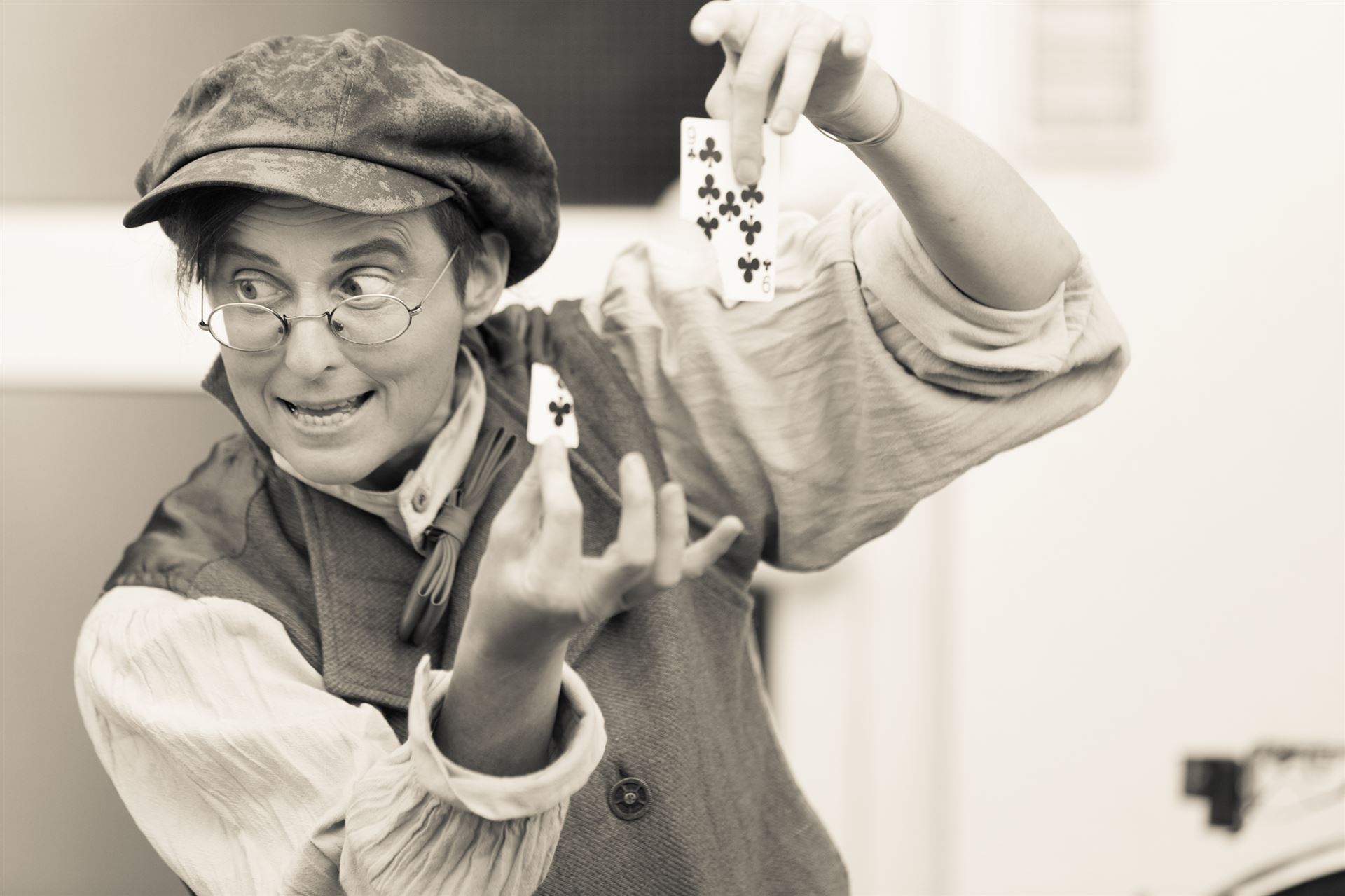 Ein Act der Bewegungstheater, Pantomime und klassische Zauberkunst miteinander verbindet.